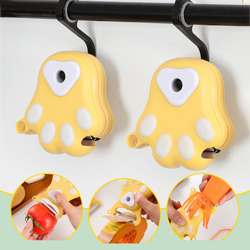 3-IN-1 VERSATILITY: The peeler combines a playful cat paw design with practical functionality, offering three essential tools in one: a julienne cutter, peeler, and slicer for effortless food prep.
